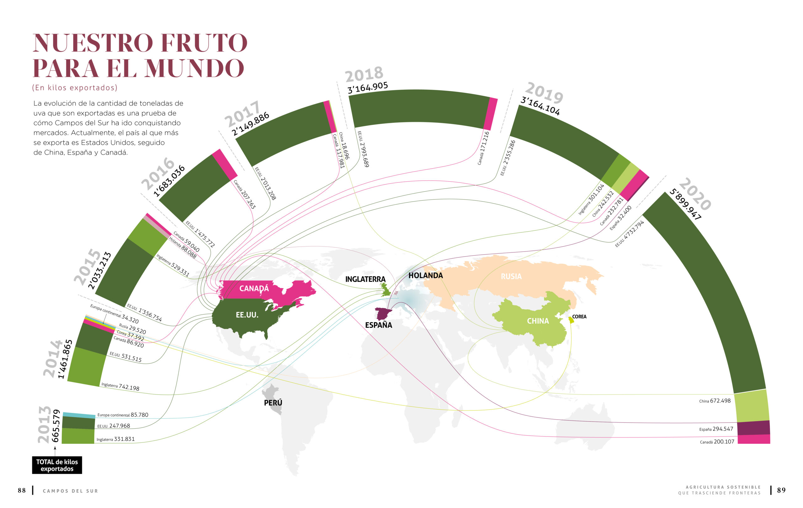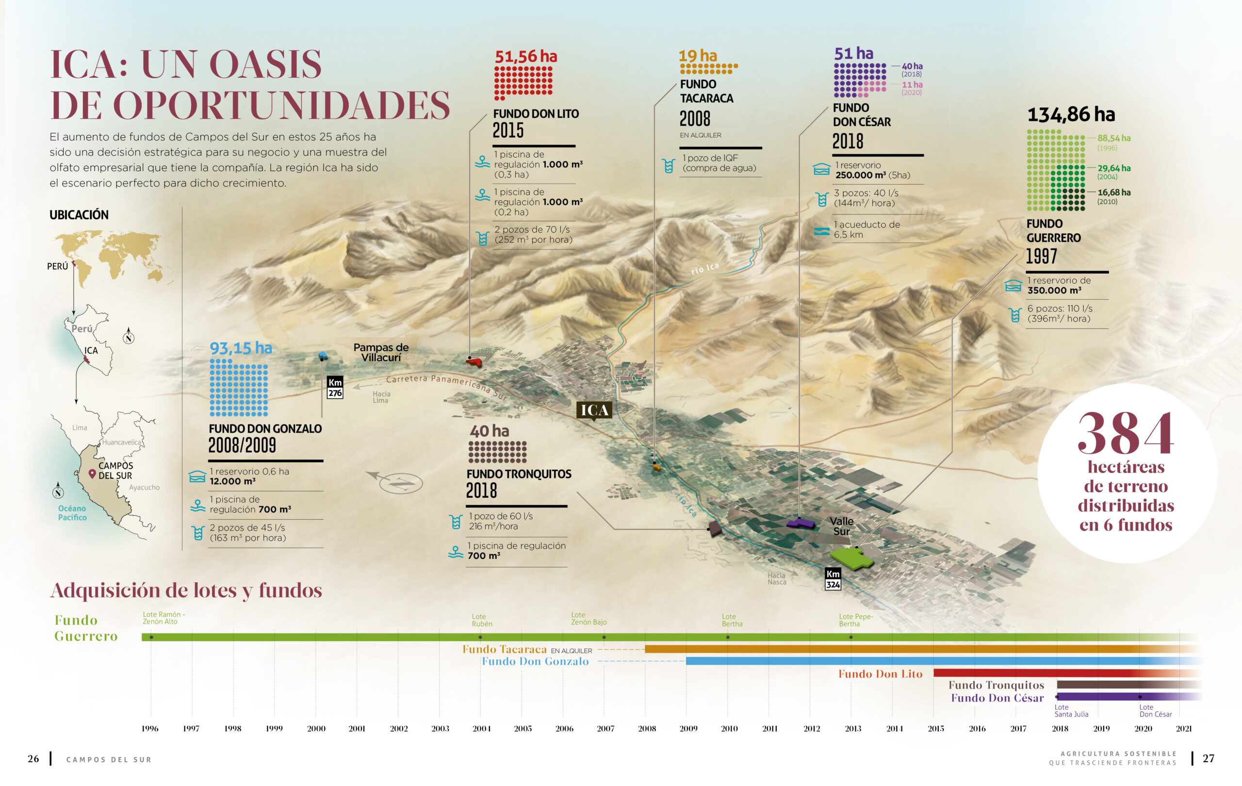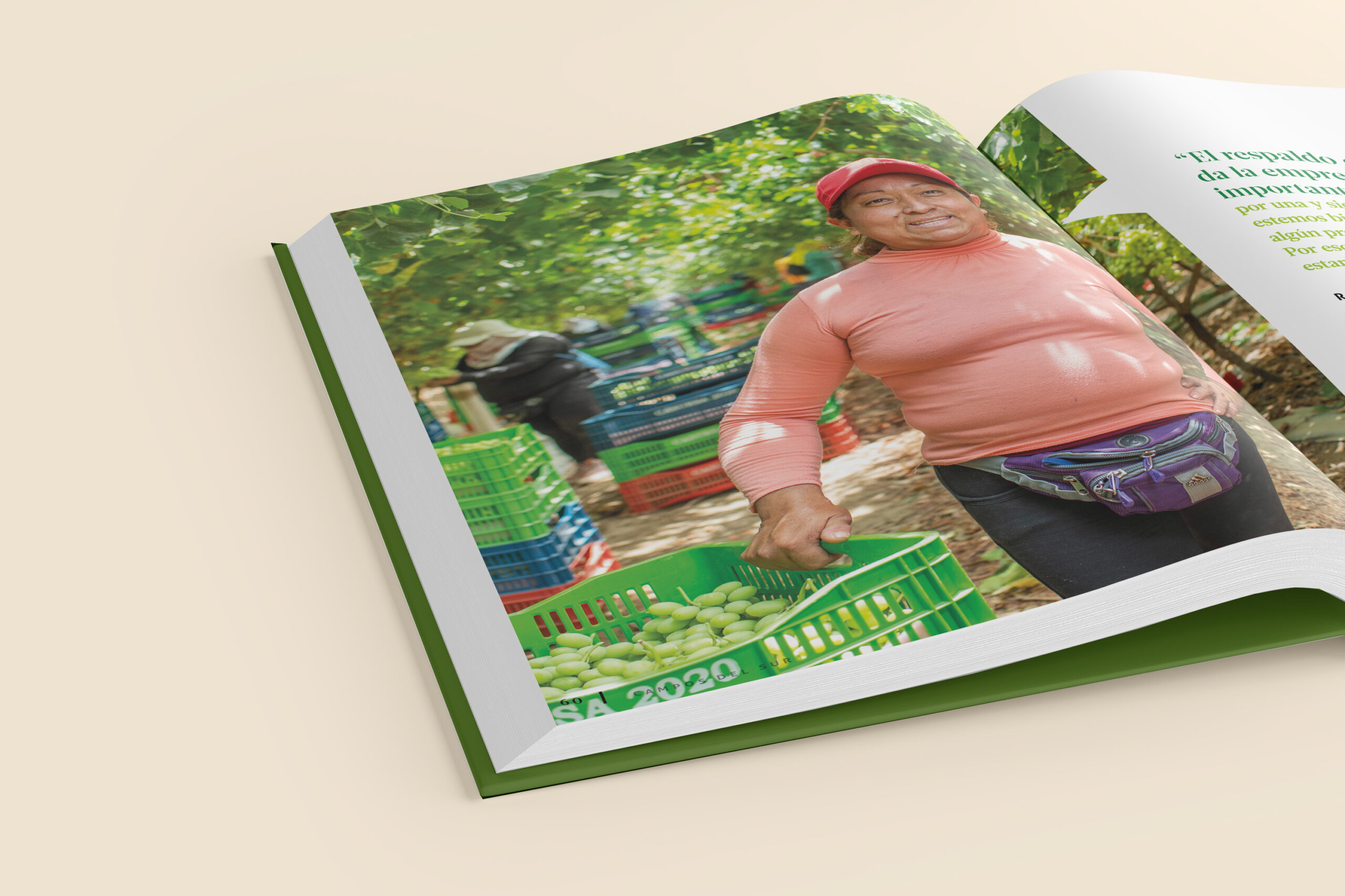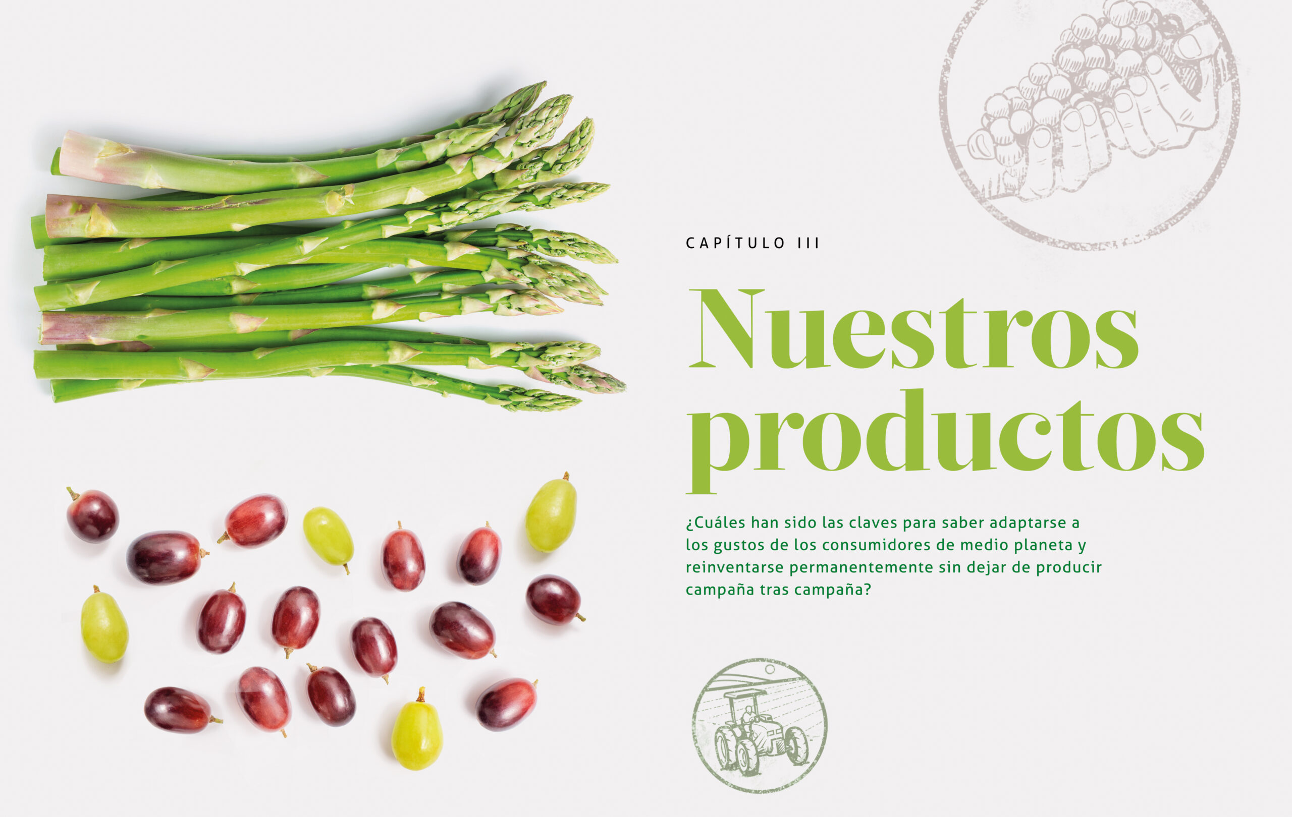 El reporteo en campo, realizado en Ica, junto con el registro fotográfico in situ de sus protagonistas y espacios de trabajo, y la recopilación de material de archivo, permitió reconstruir el recorrido de la empresa: desde sus inicios con el espárrago hasta la exportación de uva de mesa y su apertura a mercados internacionales, siempre bajo un modelo de negocio responsable.