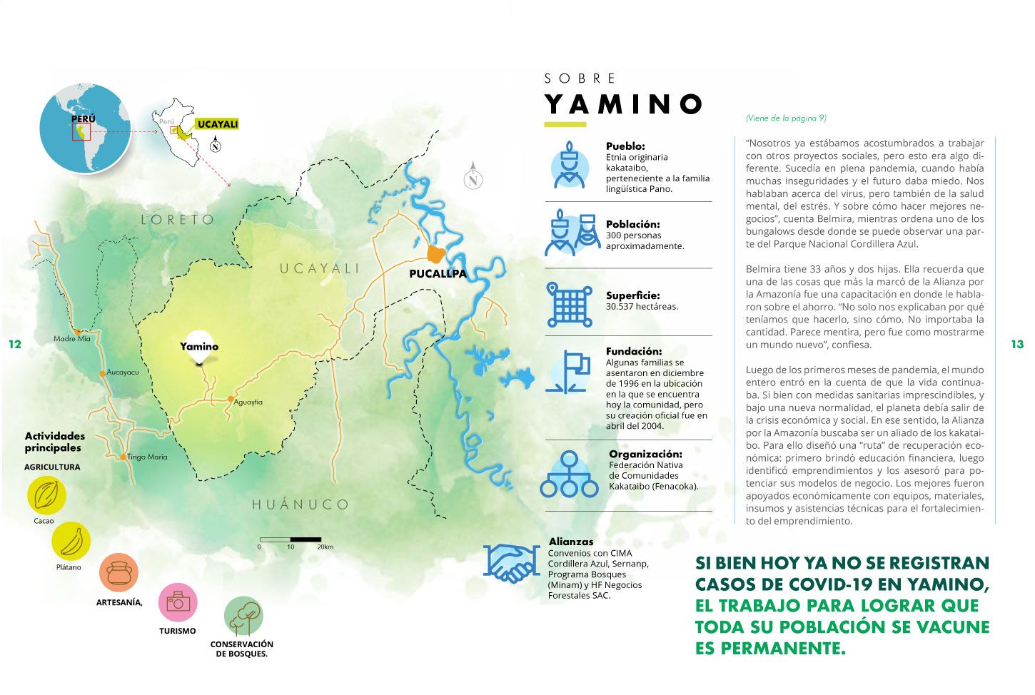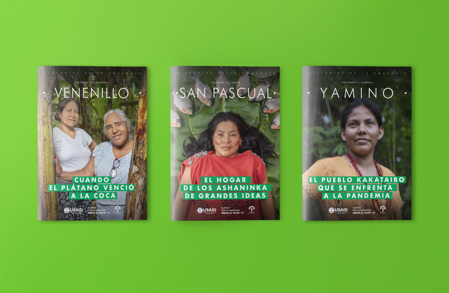 El proyecto se implementó en cuatro comunidades indígenas en situación de vulnerabilidad en Perú: Yamino (Ucayali), San Pascual (Junín), Venenillo (Huánuco) y Amazonía (Loreto). Cada territorio dio lugar a una publicación específica, reunidas bajo el título Historias de la Amazonía.