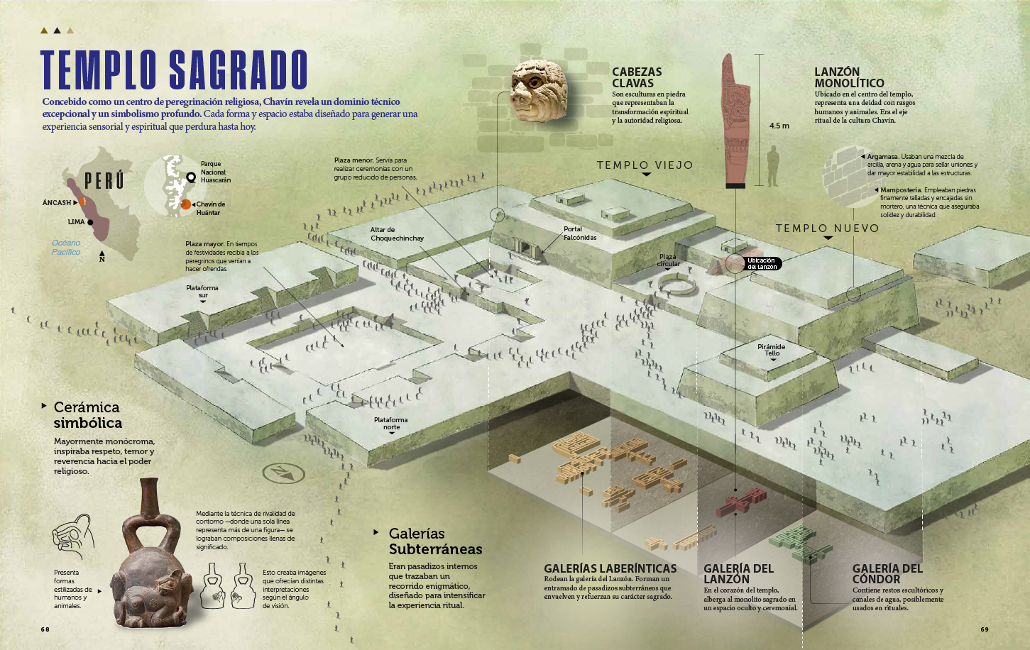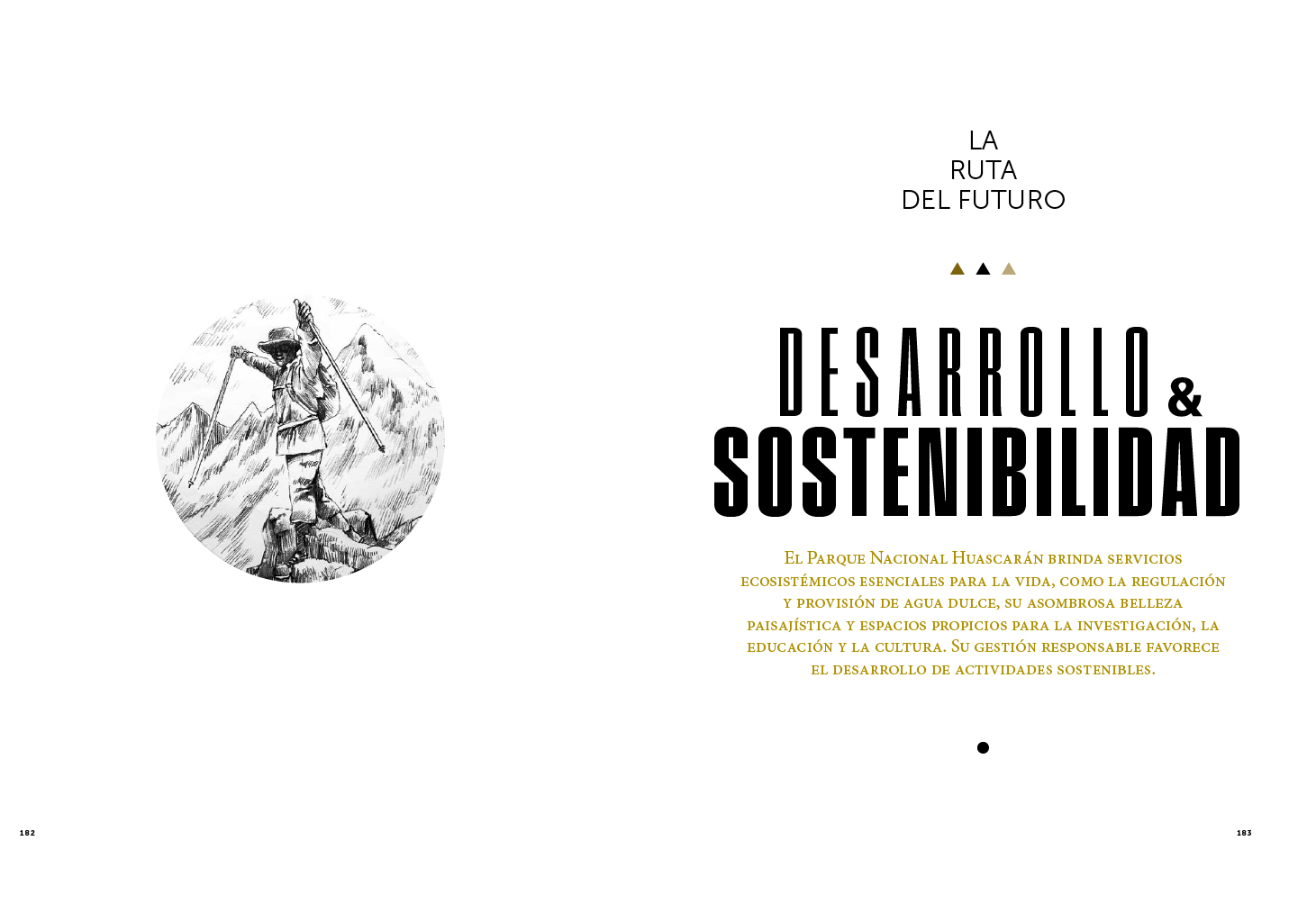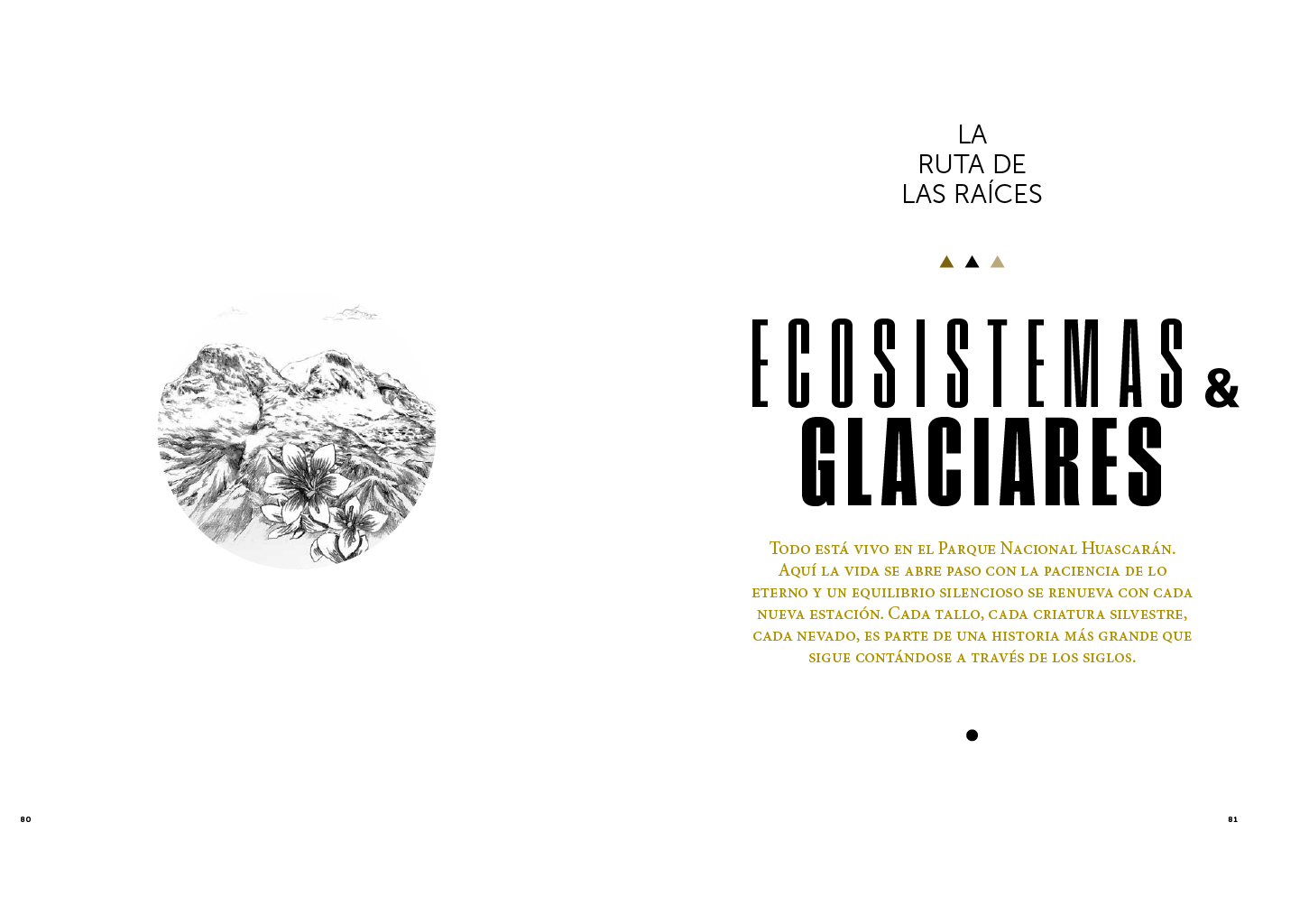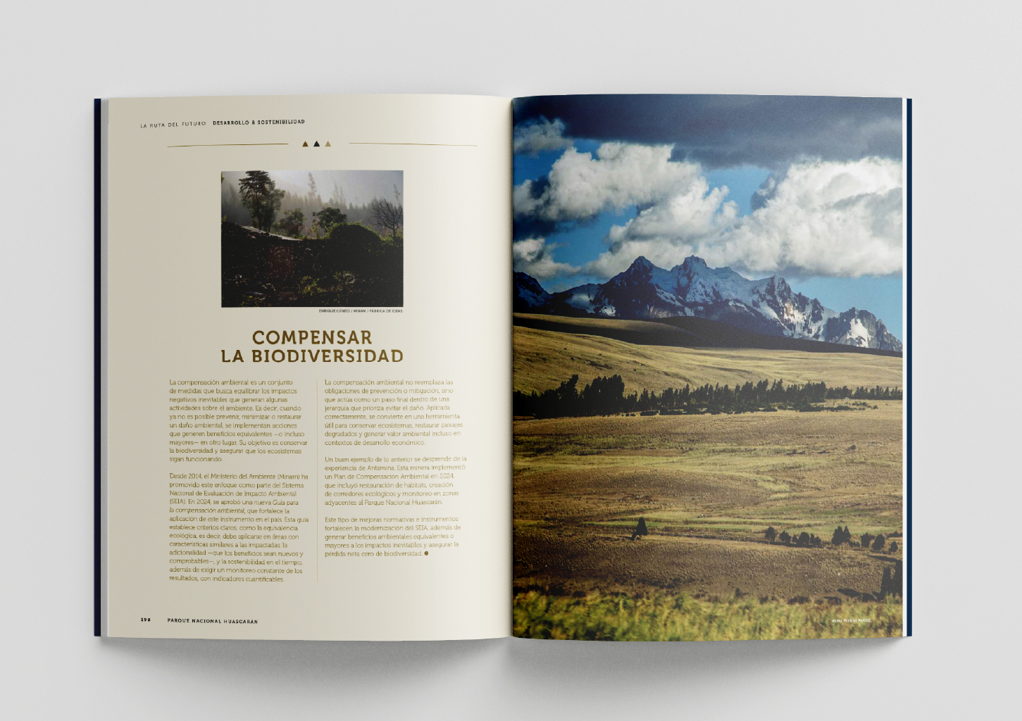 El componente textual convive con impactantes imágenes a doble página que dan a conocer la magnificencia de este espacio natural que enfrenta los desafíos del cambio climático e infografías que complementan la