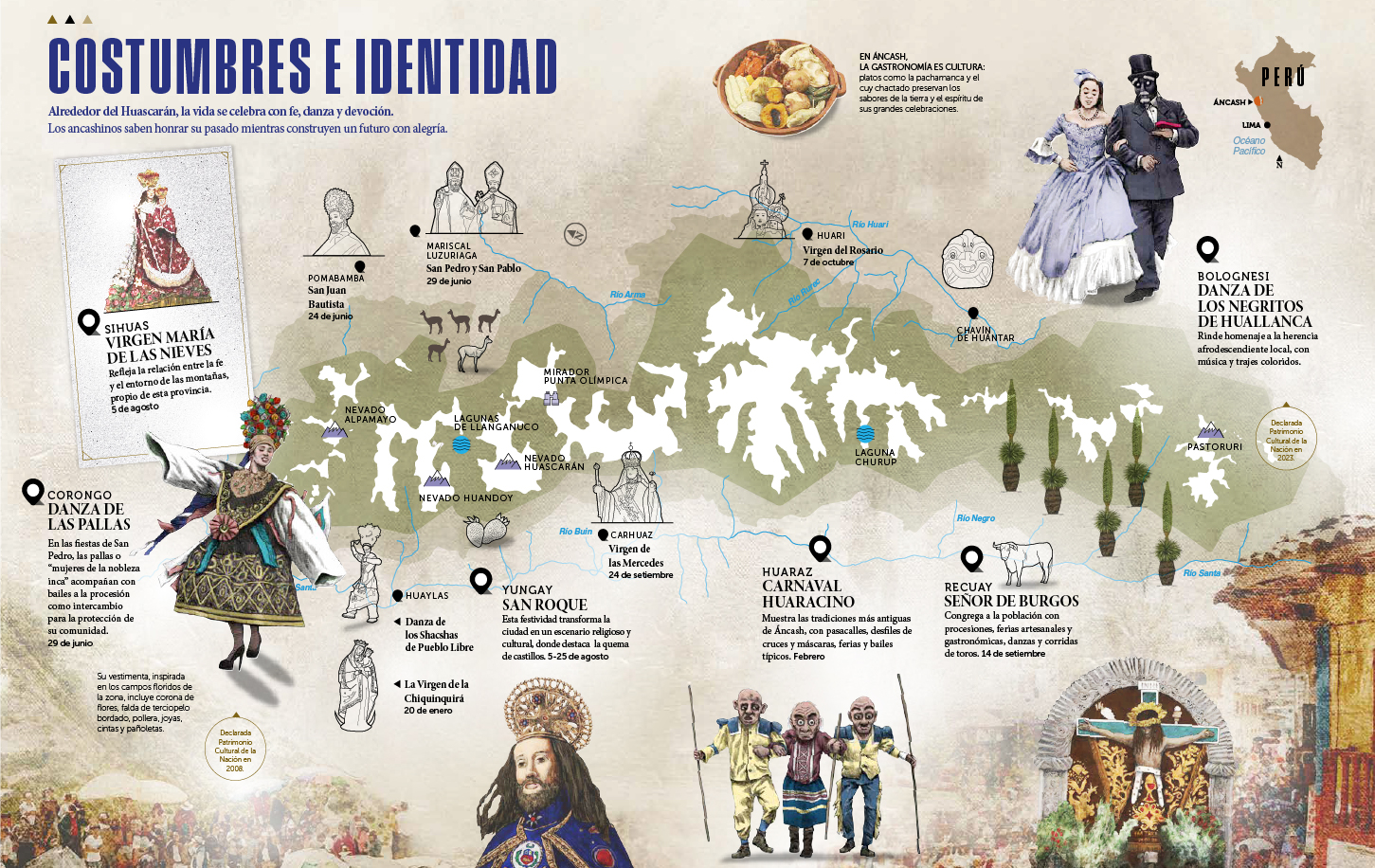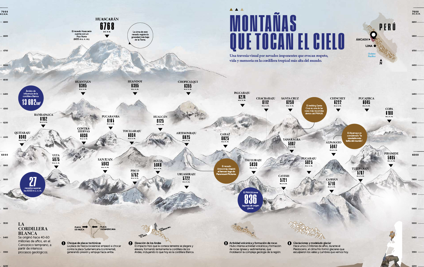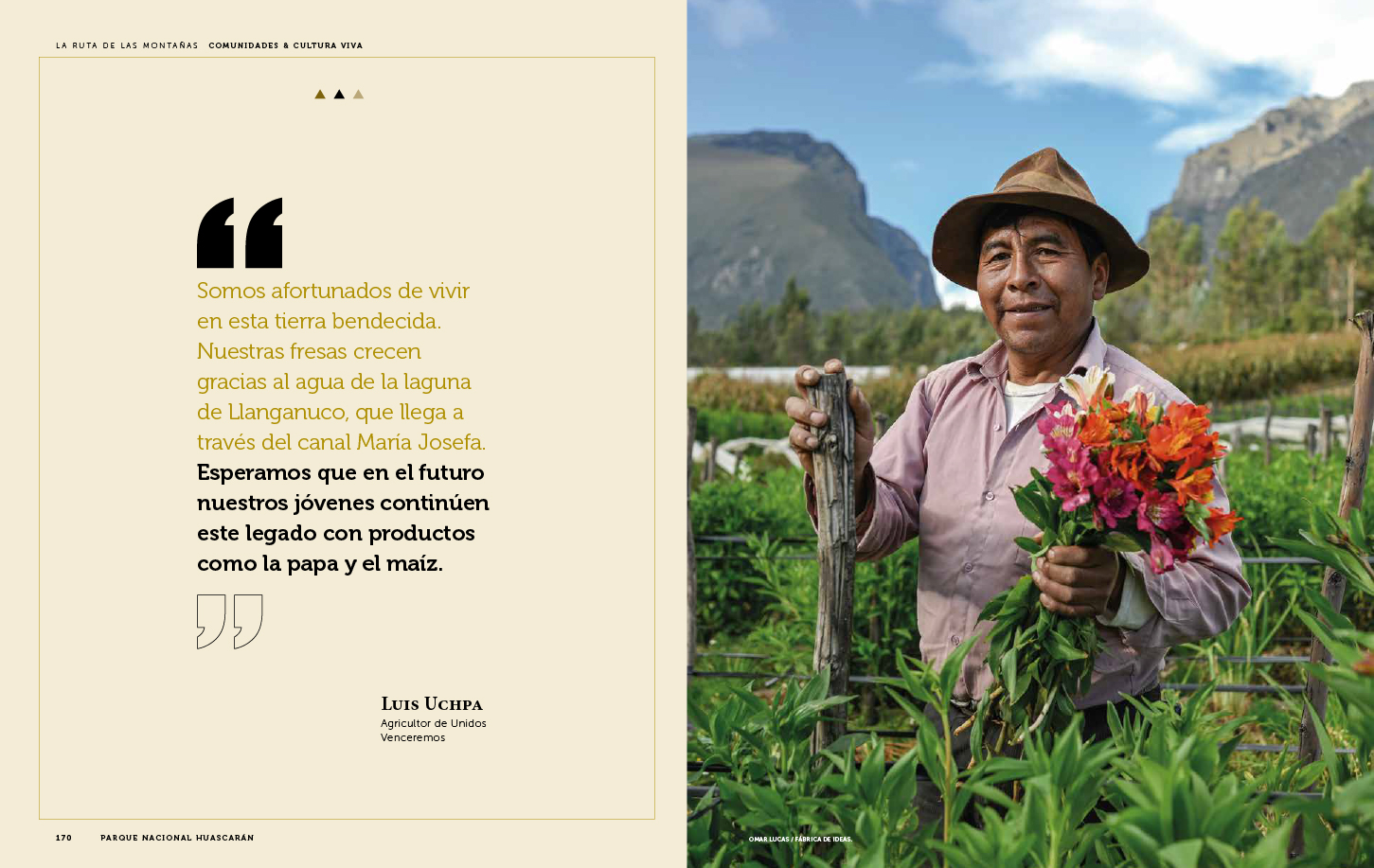 A nivel de contenido, además de referirnos a su legado y grandeza paisajística, viajamos a la zona (Ancash) para dialogar con líderes de comunidades campesinas que habitan sus alrededores y conocer sus proyectos sostenibles. Ello como resultado de su modelo de gestión participativa que involucra de manera activa a poblaciones locales en la conservación del área. También con operadores turísticos que actúan de forma responsable y que generan un impacto económico a la región, entre otros actores que responden a un propósito mayor: priorizar la vida, el presente y el futuro.