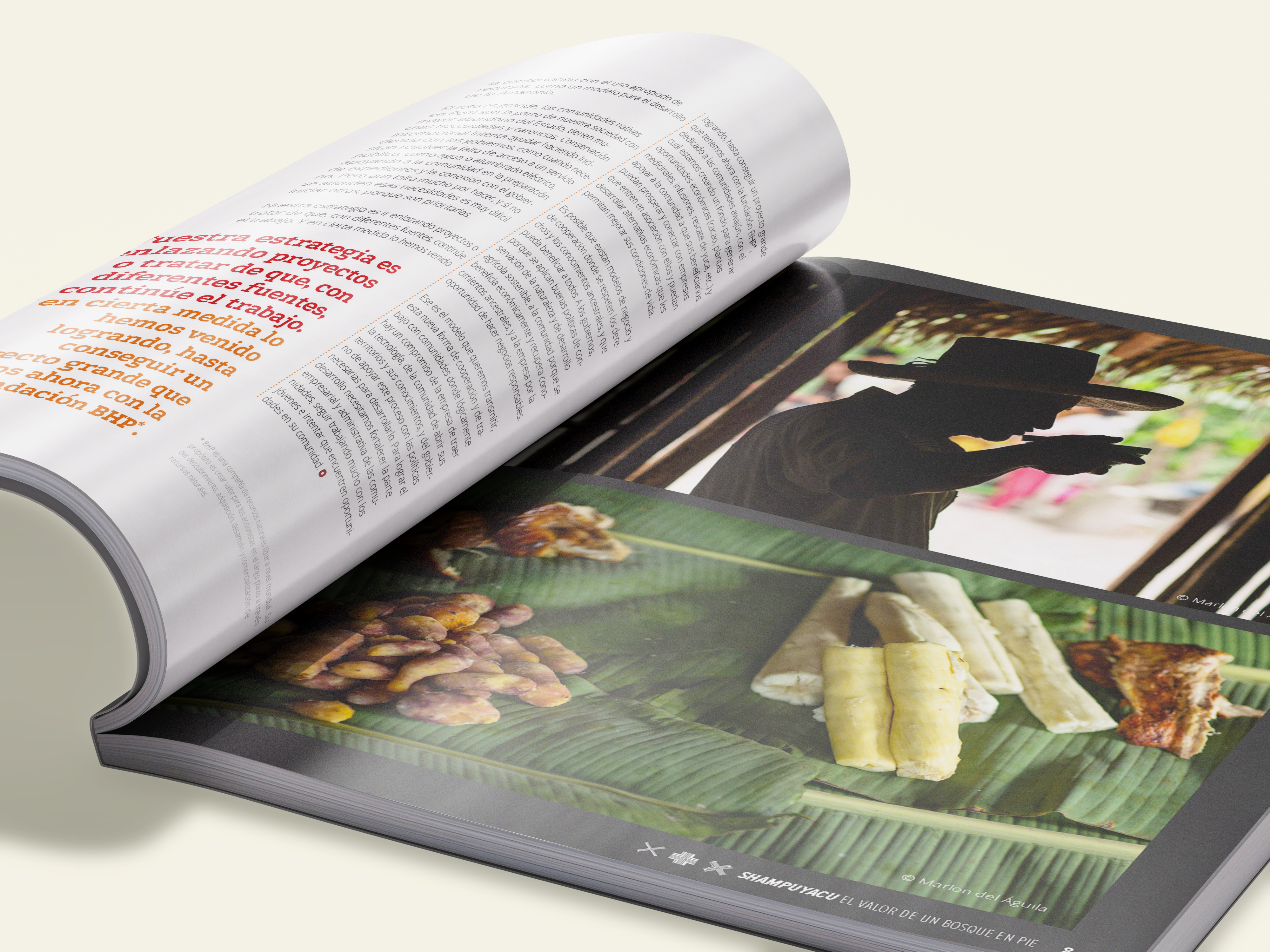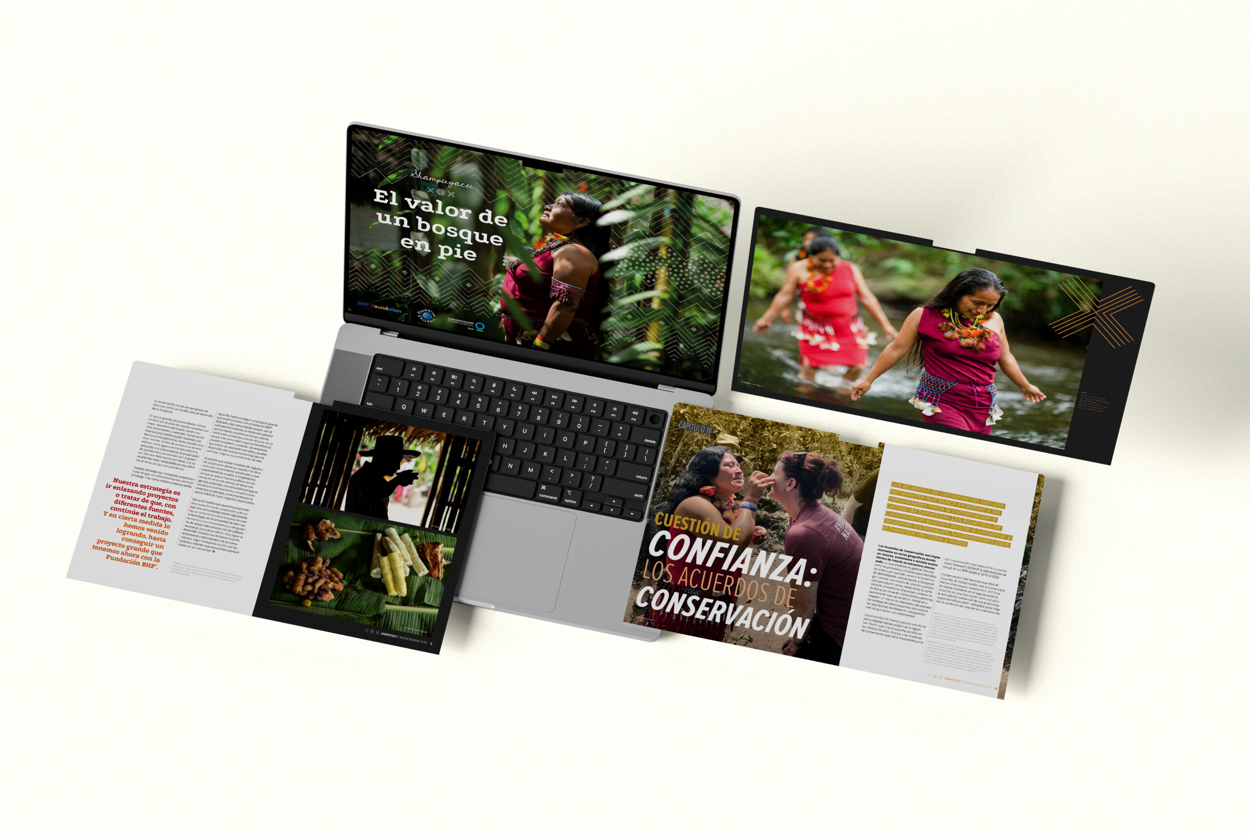 Desde Fábrica de Ideas nos encargamos de convertir un proceso complejo —que engloba temáticas como saberes ancestrales, la conservación ambiental y el empoderamiento de las mujeres en el bosque de las Nuwas— en una pieza completa de acceso simple, ordenado y riguroso.